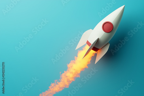 Stylized paper rocket launching with a fiery trail isolated on a solid background