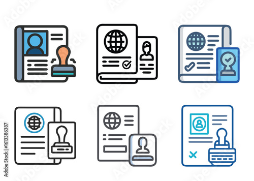 Stylized Passport Icons Representing Travel Documents and Visa Applications
