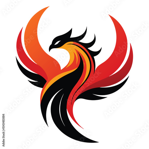 Stylized Phoenix Bird Red Orange Black Wings Abstract Logo Design vector