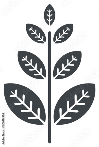 Stylized Plant Illustration with Leaves and Stem, Simple Geometric Design for Decoration and Backgrounds