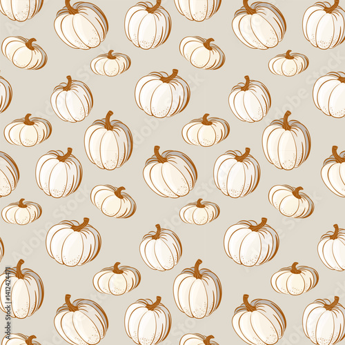 Stylized pumpkins in a pattern.Vector seamless pattern with pumpkins on a light background.