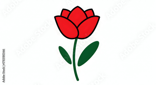 Stylized Red Tulip with Black Outline on White Background, Simple Floral Design