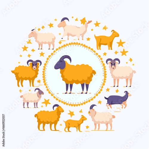 Stylized Sheep Circle: A Whimsical Farm Animal Illustration