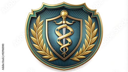 Stylized shield emblem with intertwined snakes and pillars, surrounded by a circle, symbolizing unity and expertise in the healthcare profession.