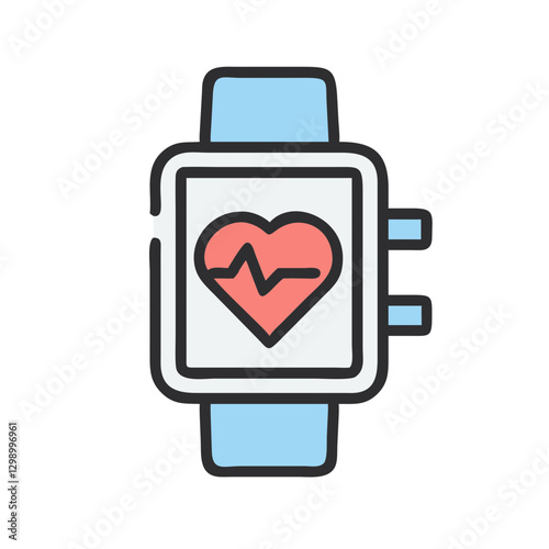 Stylized smartwatch icon featuring heart rate symbol and heartbeat line, representing health tracking and fitness
