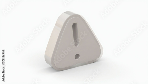 Stylized three dimensional rendering of a caution sign warning with rounded edges casting soft shadows against a pristine white backdrop