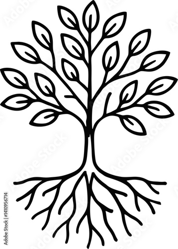 Stylized Tree with Branches and Roots Illustration