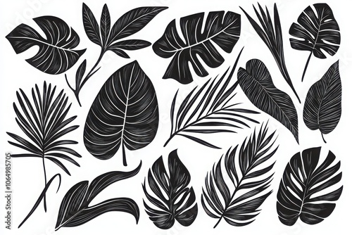Stylized tropical leaves and exotic plants art for vibrant and lush design projects