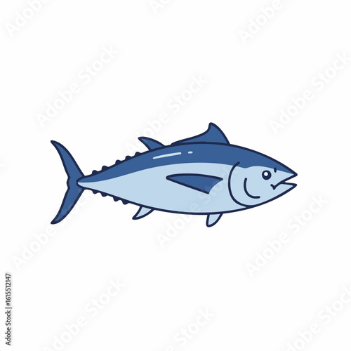 Stylized Tuna Illustration with Blue Gradient and Defined Outline