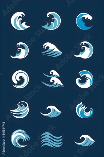 Stylized Wave Motif Icons for Water Themed Social Media Branding