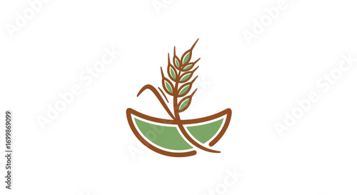 Stylized wheat stalk and boat shape logo design.