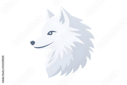 Stylized White Canine Profile with Detailed Fur and Expressive Features for Design Projects