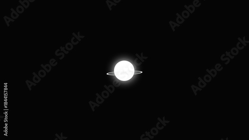 Stylized White Planet with Ring and Glow on Black Background.