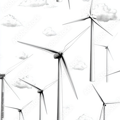 Stylized Wind Turbines and Clouds Create a Modern Eco-Friendly Pattern Generative AI