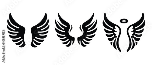 Stylized Wing Icon Set: Angelic and Minimalist Designs