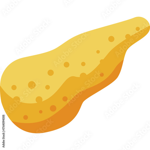 Stylized Yellow Object with Orange Underside and Small Circles Detailed Abstract Representation