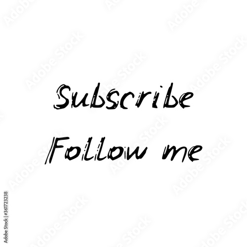 Subscribe, follow me. Black text, calligraphy, lettering, doodle by hand isolated on white background Card banner design. Vector