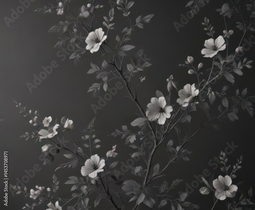 Subtle charcoal floral wallpaper, delicate sprigs , charcoal, decor, grey