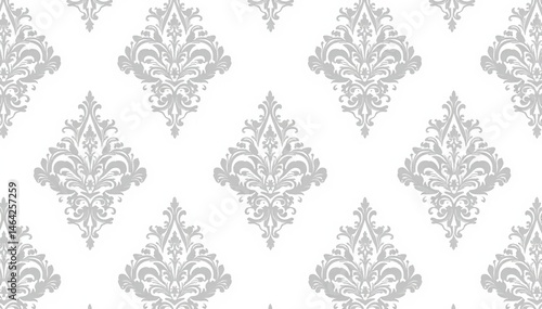 Subtle gray damask pattern on white, ideal for backgrounds, backdrop, style, damask