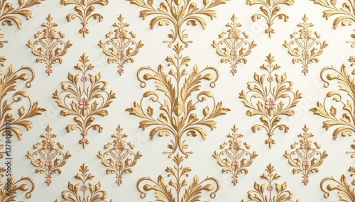 Subtle repeating damask pattern with scrolling acanthus leaves and delicate flowers in muted tones , soft, damask