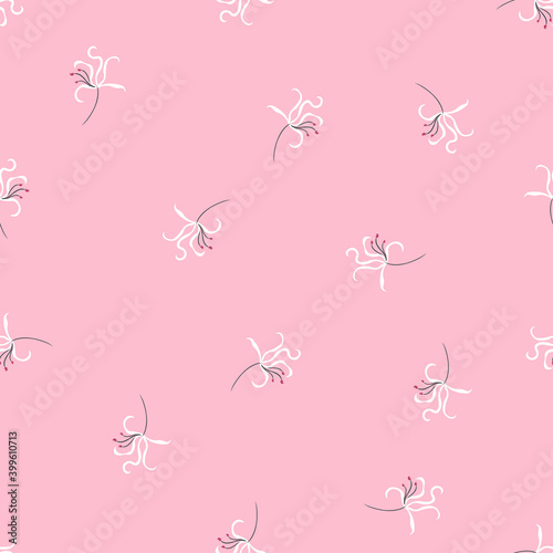 Subtle vector floral seamless pattern. Abstract background with small white flowers scattered on pink backdrop. Liberty style wallpapers. Simple minimal ditsy texture. Repeat design for wallpapers