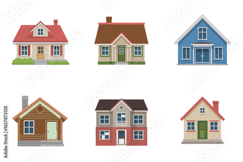 Suburban house and cottage icons, residential home vector, family house illustration, real estate collection, neighborhood design
