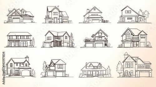 Suburban House Sketches Architectural Designs