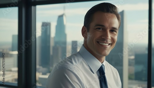 Success and Laughter: Businessman Engaged with Computer, Charts, and Presentation in a Vibrant Work Environment, Embracing Achievement with Joy and Professionalism