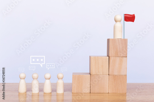 Success businessman standing on the pedestal. A group of businessmen with competition in business