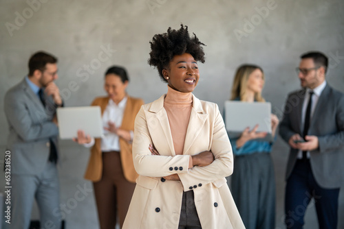 Success group of multiethnic entrepreneurs and business people achieving goals in corporate office
