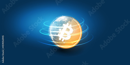 Success in Cryptocurrency Investment - Dark Blue Bit Coin Concept Design, Presentation Template - Vector Illustration