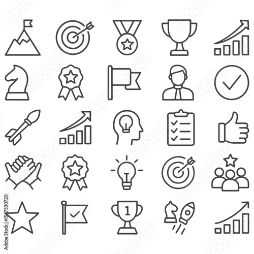 Success Line Icon Set – Outline Icons for Achievement, Growth & Motivation