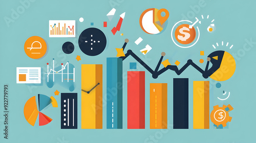 Successful Business Growth and Expansion - showcasing a thriving business with upward-trending graphs, growing bar charts, and symbols