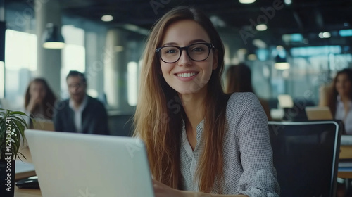 Successful businesswoman using laptop, working in office. Business technology corporate concept