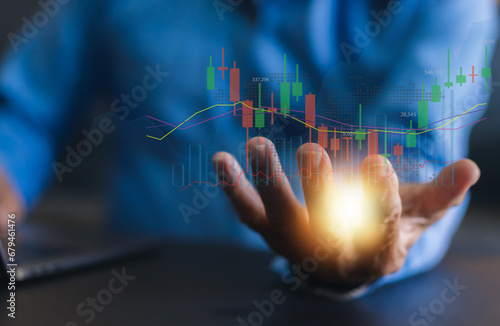 Successful of trader holding trading stock exchange graph money, global economic, trader investor,graph money of block chain stock market cryptocurrency selling and buy with price chart data graph