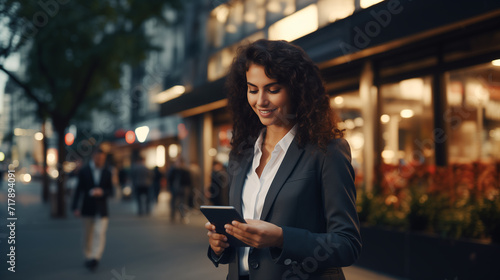 Successful smile businesswoman or entrepreneur standing in front of his office.