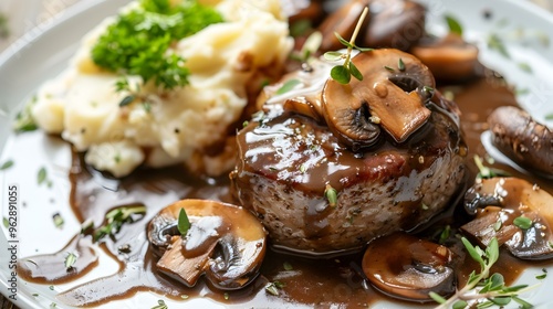 Succulent Beef Steak with Mushroom Sauce and Mashed Potatoes