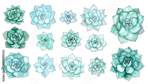 Succulent Sketch with Dusty Green Wash Isolated On White Background. Abstract watercolor background