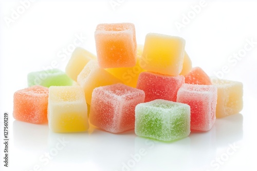 Sugar coated gummy cubes, isolated on white background for sweet indulgence and colorful treat options