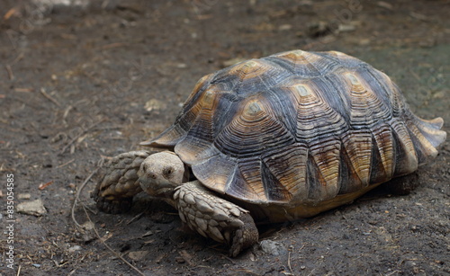 Sulcata tortoise on the ground