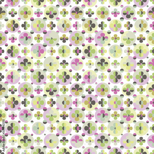 Summer abstract seamless vector pattern with stylised flowers and circles in soft pastel colours. Decorative geometric floral grid texture for wallpaper, prints, fashion fabrics and home decor.