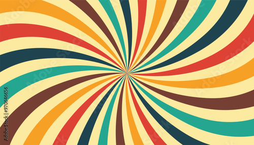 Summer and carnival background. old retro perspective lines background. vintage colourful stripes wallpaper. groovy retro swirl burst
