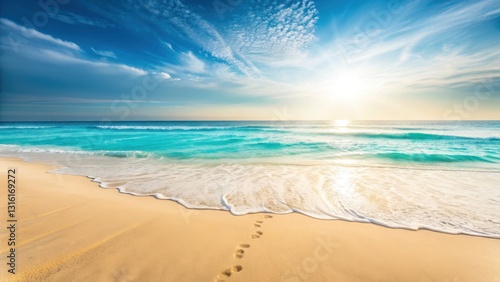 Summer beach vacation scenic coastal view of crystal clear waves rolling onto soft sand