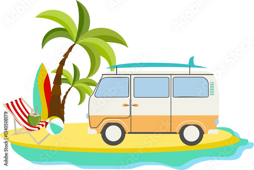 Summer Beach Van Car Illustration