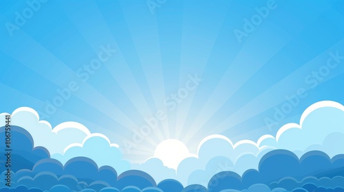 Summer Blue Sky With Cloud Gradient Light, Casting A Warm And Comforting Glow Over The Landscape, Cartoon Background