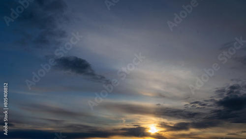 Summer evening sky in the picturesque clouds, lit by the rays of the setting sun.