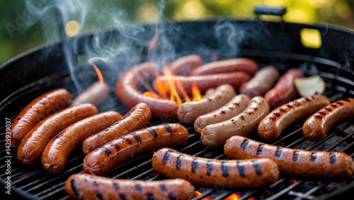 Summer garden barbecue featuring sizzling sausages and smoky grilled meats