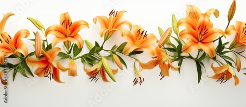 Summer garden with orange lilies on a white backdrop, perfect for a copy space image.