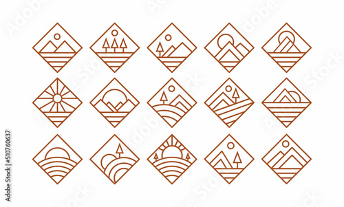 summer holiday icon set, logo badge nature sun beach mountain vector
