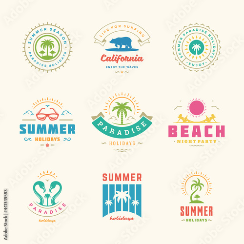 Summer holiday labels and badges retro design set